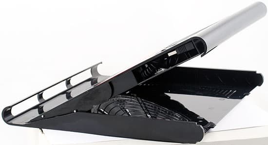 Но были у предыдущей модели и некоторые недостатки, свойственные также многим ее конкурентам — она целиком и полностью оптимизирована для стационарного настольного использования. Увлечение алюминием в качестве конструктивного материала это, конечно, отлично, только общий вес AirGear, в результате, составил 2 кг — многие ноутбуки сами по себе весят столько или меньше (или несколько больше, но вполне сравнимо). Прибавьте к этому размеры 32 × 42 × 6 см даже в транспортировочном положении, и станет ясно, что возить такого монстра с собой никто не станет. А применение отдельных узких боковых опор приводит к тому, что надежно система из ноутбука с подставкой может стоять исключительно на столе. В то же время очень многие держат ноутбук на коленях или на животе, лежа в кровати. Второе, конечно, вредно с точки зрения врачей (как и чтение лежа), но кто их рекомендации слушает? Первое встречается сплошь и рядом. И проблем с охлаждением в том случае, когда ноутбук находится на «мягкой» поверхности, гораздо больше, чем на столе — в этом случае нижние вентиляционные отверстия практически всегда закрыты. Да и держать на собственном теле нечто горячее (пусть не обжигающее) неприятно. Чем нам тут сможет помочь первый AirGear? Ничем! Во-первых, не будет надежно держаться, во-вторых, он слишком тяжел. Двухкилограммовый ноутбук плюс двухкилограммовая подставка — не слишком ли много, чтобы долго держать на собственных коленях?