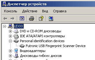 После завершения установки у нас в системе появляется новый класс устройств Personal identification devices и его типичный представитель: уже знакомая черненькая пластиковая коробочка.