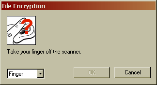 А если попробовать зашифровать файлы с помощью отпечатка, не зарегистрированного в Finger Manager, то можно полюбоваться и на такое: