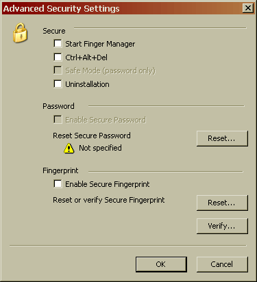 Для системных администраторов и других лиц, страдающих паранойей, есть пункт Advanced Security Settings. Здесь можно защитить мастер-паролем или отпечатком пальца запуск самой программы, нажатие комбинации Ctrl-Alt-Del и деинсталляцию программы.
