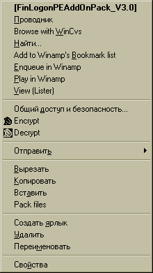 После установки, в программной группе Futronic Logon появляется новый пункт: OneTouch Password Filler и дополнительные пункты контекстного меню Encrypt и Decrypt, предусмотрительно расположенные в той же части меню, что и Общий доступ и безопасность