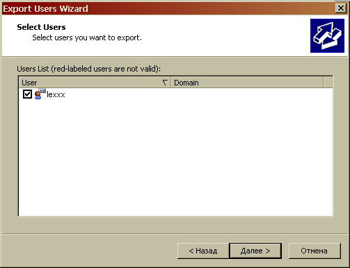 Меню Action предлагает как раз то, что нужно стандартный набор действий: Добавить Пользователя/Отпечаток, Удалить, Переименовать, Изменить свойства и осуществить Экспорт/Импорт пользователей. При добавлении, для каждого нового пользователя появляется новая строка в табличке. Очень удобно то, что процедура добавления использует стандартное системное окошко выбора пользователя особенно это будет полезно пользователям домена.