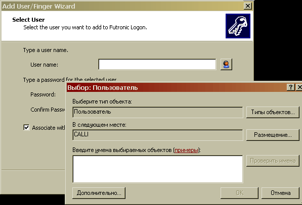 После установки (Setup -> Next -> Yes -> Next -> Next- > Yes -> Finish, Reboot) первое, что бросается в глаза изменение стандартного окошка входа в систему: теперь оно содержит логотип Futronic и предлагает на выбор (в зависимости от настроек, о которых мы поговорим позже) два способа входа в систему: обычный нажать Ctrl-Alt-Del и ввести свой пароль (программа при установке включает такой тип логона) или с и использованием сохраненных отпечатков пальца (для каждого пользователя можно зарегистрировать хоть все 10 пальцев, к сожалению пальцы на ногах не предусмотрены программой ;)) Так как отпечатков мы пока не «накатали» (enroll) выбираем стандартный вход и переходим к следующему этапу: добавлению наших пальчиков.