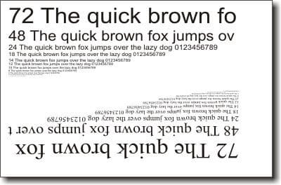 Результаты распечатки шрифтового материала с максимальным разрешением показали добротное стабильное качество, на уровне качественных монохромных принтеров с разрешением 600 dpi, с ровными краями и качественным заполнением. Ради «чистоты эксперимента» приведу распечатку шрифтового материала в режиме «300 dpi» (драйвер PostScript3).