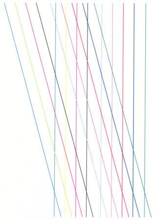 - Распечатка универсальной тестовой таблицы (здесь файл-оригинал в векторном формате CDR программы Corel Draw). Таблица подработана и усовершенствована с учетом специфики тестирования качества печати градиентной заливки и векторной графики цветными лазерными принтерами. Например, в растровых градиентных одноцветных модулях применена заливка в 512 шагов (а не 128, как обычно); зеленые радиальные линии служат для проверки качества совмещения желтого и бирюзового цветов; в центре 90-угольной звезды размещена спираль толщиной 1 pt, также зеленого цвета