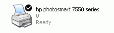 После установки драйверов в меню «Принтеры и факсы» появится запись о PhotoSmart 7550, однако, этим дело не ограничивается. Помимо этого, в трэе панели задач появится иконка с символическим изображением флэш-карточки, объявляющая об успешном появлении в вашей системе дополнительного внешнего картовода.