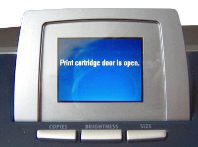 Кстати, дисплей в обязательном порядке информирующий вас о всех изменениях в функционаьных режимах, сразу же предупредит вас о том, что крышка отсека для картриджей открыта: