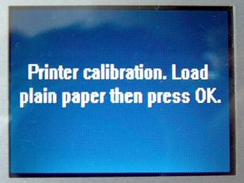 Первым делом, после закрытия крышки отсека, принтер вежливо попросит вас вставить листик обычной офисной бумаги для проведения калибровки.