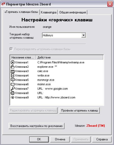 Zboard легко определяется Windows XP, устанавливается автоматически, хотя довольно долго, как несколько устройств: собственно, клавиатура и USB-концентратор. Затем следует установка «родных» драйверов и конфигурационной программы, после чего необходимо перезагрузить систему.