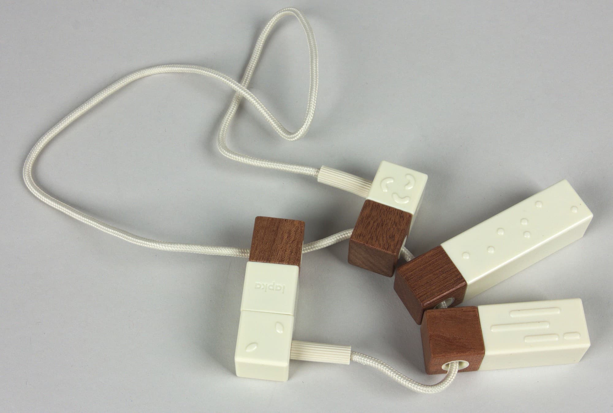 Различать компоненты приходится по нанесенным на них рельефным символам. Датчик с точками измеряет радиационный фон. Датчик с палочками — уровень электромагнитного излучения. Самый маленький, с «орешками кешью» — температуру и влажность. «Детектор кунжутных зерен» определяет содержание нитратов в продуктах.