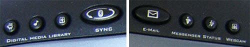 Следующий блок это восемь кнопок рядом с экраном по четыре с каждой стороны. Слева вызов папок Видео, Музыка, Рисунки и синхронизации гаджетов по Bluetooth через комплектную программу. Справа почтовый клиент, пейджер, смена статуса в пейджере и активация веб-камеры. В отсутствии оной цинично перенаправляет на посвящённую им страницу сайта Logitech для скорейшего обзаведения хотя бы одной из предлагаемых ;-0