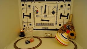 Первое: разрешающая способность. Не каждому известно, что разрешение кадра (попросту его размеры) и разрешающая способность камеры — суть разные понятия. Подавляющее большинство веб-камер, которые могут транслировать видеосигнал с размером кадра Full HD (1920×1080), фактически обманывают, занимаясь банальным апскейлом (искусственным, программным увеличением размера кадра). Да, в результате такой операции размер кадра получает вожделенный ярлык Full HD, о чем можно с гордостью заявлять в спецификациях и приклеивать на лицевую панель камеры соответствующий лейбл. Однако разрешающая способность — при таком-то разрешении — зачастую повторяет разрешающую способность обычных веб-камер, не склонных к Full HD-хвастовству. А что же наша камера, с ее цейсовской оптикой и трехмегапиксельной матрицей? Проверим с помощью стандартной таблицы.