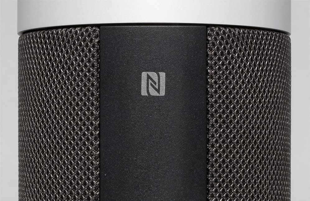 Выше этих интерфейсов можно разглядеть пиктограмму антенны NFC. Она требуется для быстрого сопряжения с мобильным устройством по Bluetooth и дальнейшим использованием системы в качестве обычной Bluetooth-колонки. Если смартфон или планшет не поддерживают технологию NFC, то сопряжение производится соответствующей сенсорной кнопкой на крышке камеры.