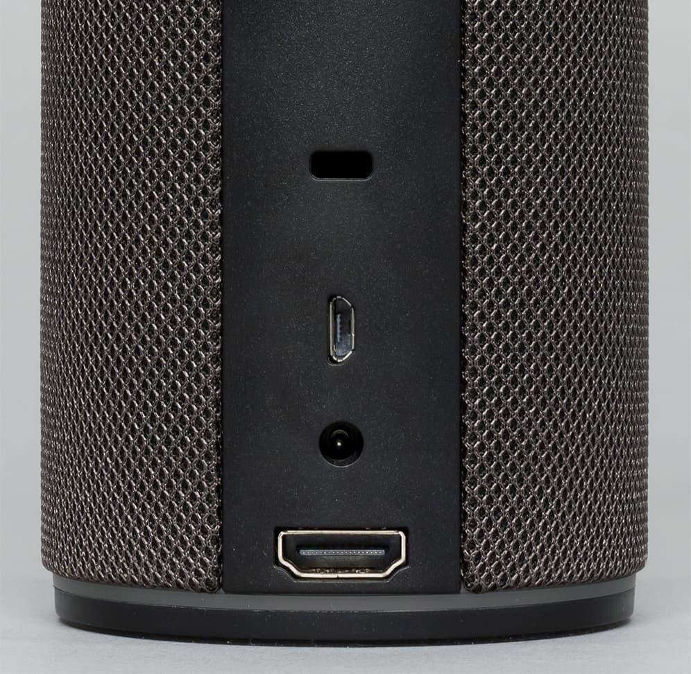 Все служебные разъемы устройства находятся сзади, в нижней части цилиндра. Здесь имеется отверстия для кенсингтонского замка (в людных конференц-залах всякие люди встречаются, так что лучше подстраховаться), порт Micro-USB для связи с ПК, вход адаптера питания и цифровой видеовыход HDMI.
