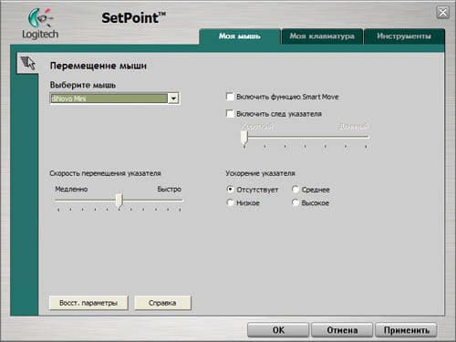 Первая закладка относится к мыши, пардон, к тачпаду. Настройки самые базовые, но при его такой базовой функциональности — вполне достаточные. Немного раздражает то, что настройки чувствительности к перемещениям и ускорения курсора — системные. Неправильно это для тачпада. С большой вероятностью, в системе будет присутствовать ещё и мышка, для неё чувствительность можно сделать меньше, а для тачпада больше. Для этого каждый раз придётся менять настройки.