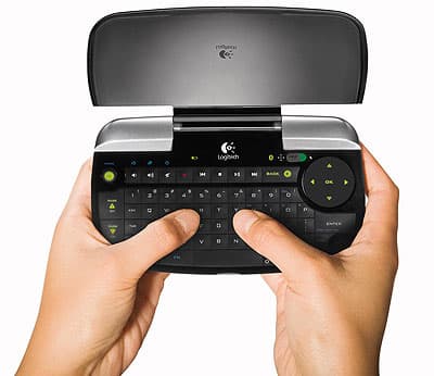 - продаваемый отдельно NumPad и ПДУ стали бы очень хорошими опциями при комплектации домашнего набора периферии, благо сейчас не составляет больших проблем выбрать мышку с интерфейсом Bluetooth. Непонятно совершенно отсутствие в ассортименте продукции Logitech ПДУ для управления домашним центром развлечений. Единственный комплект с пультом снят с производства, а раздел Keypads на сайте Logitech на данный момент просто ликвидирован, а он был. При этом компания выпускает серию отличных, но и весьма дорогих универсальных программируемых пультов для контроля бытовой техники Harmony. Линейка выстроена от относительно простой модели до монстра с сенсорным цветным экраном. К ПК они подключаются, но только для программирования. Что мешает внедрить интерфейс Bluetooth и позволить с их помощью управлять компьютером — нам совершенно не понятно. И ещё — дарим идею, навеянную крышкой! Устройство можно сделать двусторонним или горизонтальным слайдером. С одной стороны (или основная рабочая поверхность) — ПДУ, а с другой (или выдвижная часть) — клавиатура QWERTY, без излишеств. Такой вариант был бы несравненно удобнее хотя бы потому, что с ПДУ можно управлять чем угодно одной рукой на ощупь, особенно, если он грамотно спроектирован. Логичным выглядит и разделение функций клавиатуры, и управления медиафайлами. Как правило, эти задачи разнесены во времени очень чётко. Разнести их также и аппаратно будет вполне логично и удобно.