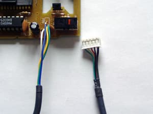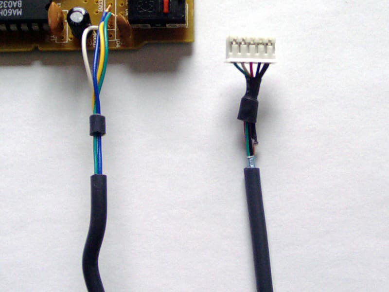 Я уже писал, что интерфейсный кабель мышек-подделок имеет меньший диаметр. После вскрытия мышки и изучения это кабеля становится понятной и причина разницы диаметров. Опять же, смотрим на фотографии.