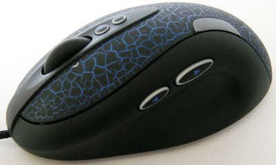 В плане формы и кнопок — вполне типичный для компании, а в плане материалов интересный и привлекательный. Мышь продолжает серию MX500 (510, 518), также предназначенную для игроков. В них была применена окраска, имитирующая «отметины от пуль», а в дизайне преемницы использована имитация «потрескавшейся лавы». Общий тон окраски чёрный, сквозь трещины проглядывает тёмно-синее. Кнопки с серебристыми ободками, той же краской выполнен логотип производителя. Несколько в диссонансе оранжевый индикатор текущего разрешения сканирования сенсором поверхности. Синий цвет смотрелся бы органичнее.
