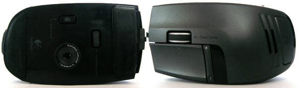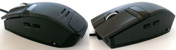 Боковые кнопочки на обоих внешне ничем не отличаются, конструктивно передаточный механизм на XL пластиковый, «растёт» из основания (слева). На Precision это металлические пластины, крепятся к основанию саморезами. Разницы в работе кнопок не заметил. При сжатии мыши в поперечном направлении возможны ложные срабатывания боковых кнопок, но это не когда она в рабочем положении, а когда её поднимаешь за боковые грани. Тогда же (и только тогда!) можно отметить небольшой люфт корпуса по отношению к мыши. Основные кнопки с боков ограничиваются нешироким кантиком в обоих накладках.