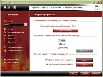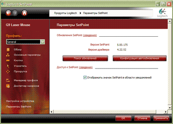 В целом драйверы работали нормально, однако кнопка «назад» практически всегда выдавала двойное нажатие вместо одинарного, чего не наблюдалось в отсутствии SetPoint. И вот ещё что. На сайте производителя заявлено, что при совместном использовании с другой продукцией Logitech, требующей драйвера более ранней версии, следует установить сначала его, а потом ПО для G9. У меня одновременно был на тестах комплект Wave, и я так и сделал сначала установил для него четвёртую версию, а потом поверх пятую. После чего четвёртая версия отказалась запускаться, все сделанные в ней настройки были утеряны, и вообще клавиатура и мышь стали работать хуже, чем вообще без драйверов. Впридачу удаление из системы этого букета потребовало пяток перезагрузок, повторной инсталляции четвёртой версии после удаления пятой, и только после этого всё удалось уничтожить. Озадаченный, я воспроизвёл ситуацию на другой машине она повторилась в точности. Так что не всё гладко с совместимостью со старыми версиями у новой, мягко говоря.