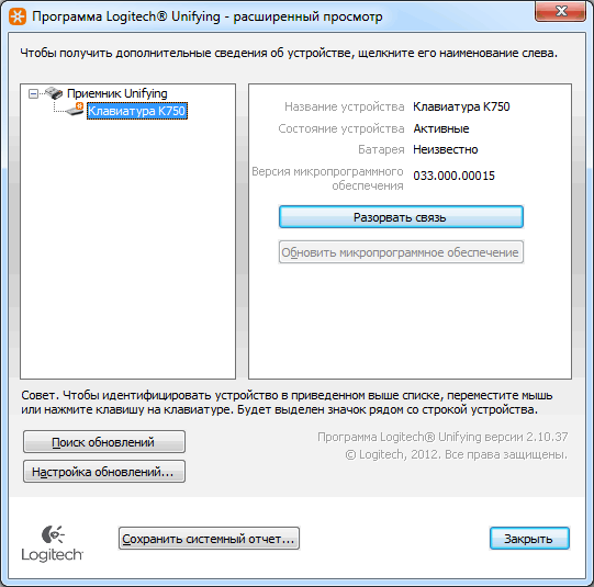 За работу с беспроводным интерфейсом отвечает программа Logitech Unifying.