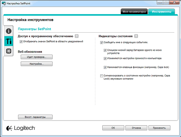 Для работы непосредственно с клавиатурой предназначена программа SetPoint (во время тестирования использовались версия ПО 6.52.74 и версия драйвера 5.52.29).