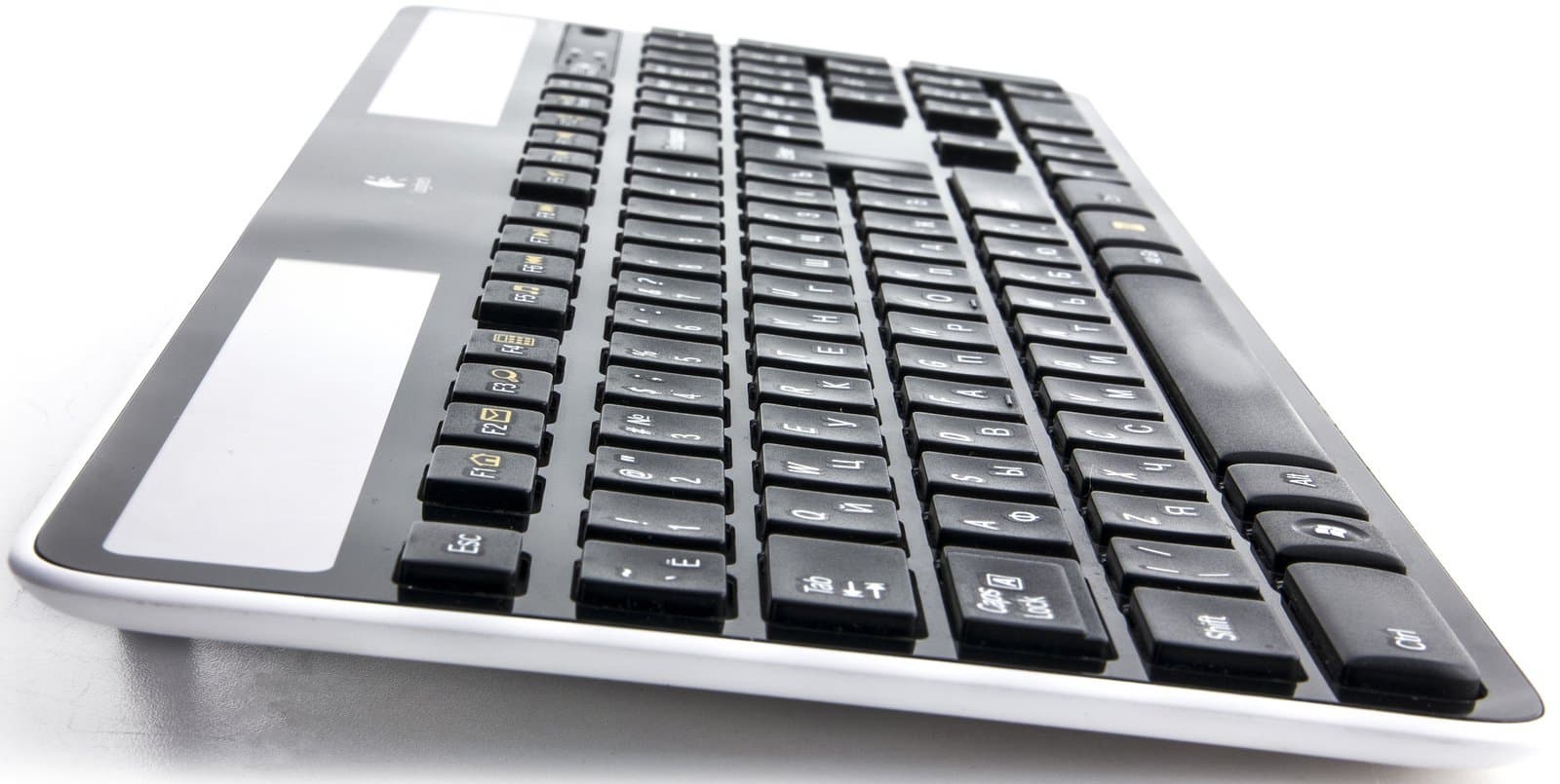 В отличие от Wireless Illuminated Keyboard, Wireless Solar Keyboard не принадлежит к семейству клавиатур с технологией PerfectStroke. K750 представляет собой клавиатуру с кнопками островного типа, расположенными на приличном расстоянии друг от друга. Это может создавать определенные неудобства при печати, усугубляемые слишком вогнутой формой основных кнопок (при этом функциональные кнопки, Ctrl, Alt и пробел сделаны выпуклыми) в сочетании с острыми краями.