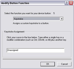 Для чего же стоит скачать «лишних» 4.5 Mb MouseWare 9.78? Причина есть, но она не такая уж и веская. В новой версии драйвера в меню, где на дополнительные кнопки мыши назначаются какие-либо альтернативные действия, убраны пункты назначения функциональных клавиш (F1-F12), а также некоторых других клавиатурных клавиш. Вместо этого предлагается унифицированный подход в виде одного пункта меню «Keystroke», при помощи которого вы сможете назначить любой кнопке мыши абсолютно любую клавиатурную клавишу или даже комбинацию клавиш при помощи активной строчки меню, где, собственно, и вводится нужное сочетание клавиш.