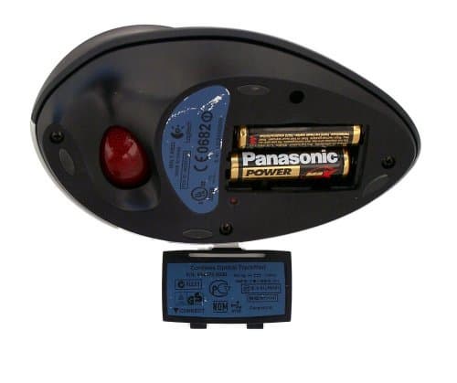 Трекбол использует беспроводной радиоинтерфейс. Ресивер подключается к порту USB (есть переходник USB-PS/2), длина провода 130 см. К сожалению, качество работы ресивера не высоко (по сравнению с ресиверами большинства беспроводных мышей). Устойчивая связь возможна лишь на расстоянии примерно на те же 130-140 см. Кроме того, следует внимательно отнестись к выбору места для ресивера:, например, у меня он не заработал, будучи положенным сверху на системный блок. Следует избегать излишней близости и от других электронных устройств. Питание осуществляется от двух батареек АА (поскольку трекбол крупный, проблем с размещением батарей не возникает), расположенных вдоль корпуса. В драйверах есть возможность индикации уровня зарядки батарей; за пару месяцев уровень визуально не снизился.