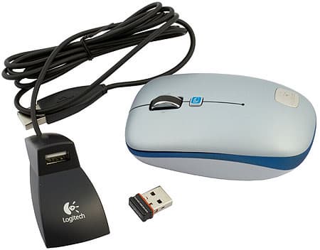 Мышь укомплектована так называемым «нано-ресивером», выступающим из USB-порта всего на 5 мм. Стоит отметить, что первой эту идею в массы пустила именно компания Logitech, хотя сейчас уже аналогичные продукты есть в ассортименте всех производителей мышей. Неудивительно — большие ресиверы-стики неудобны, по крайней мере, тем, что их приходится постоянно вытаскивать из ноутбука на время транспортировки и вставлять обратно, чтобы работать. Другая причина, по которой многим не нравятся «классические» модели приемников, — во время работы можно ненароком зацепиться за него и «вывернуть» вместе с портом из корпуса ноутбука, либо, что более вероятно, сломать само устройство.