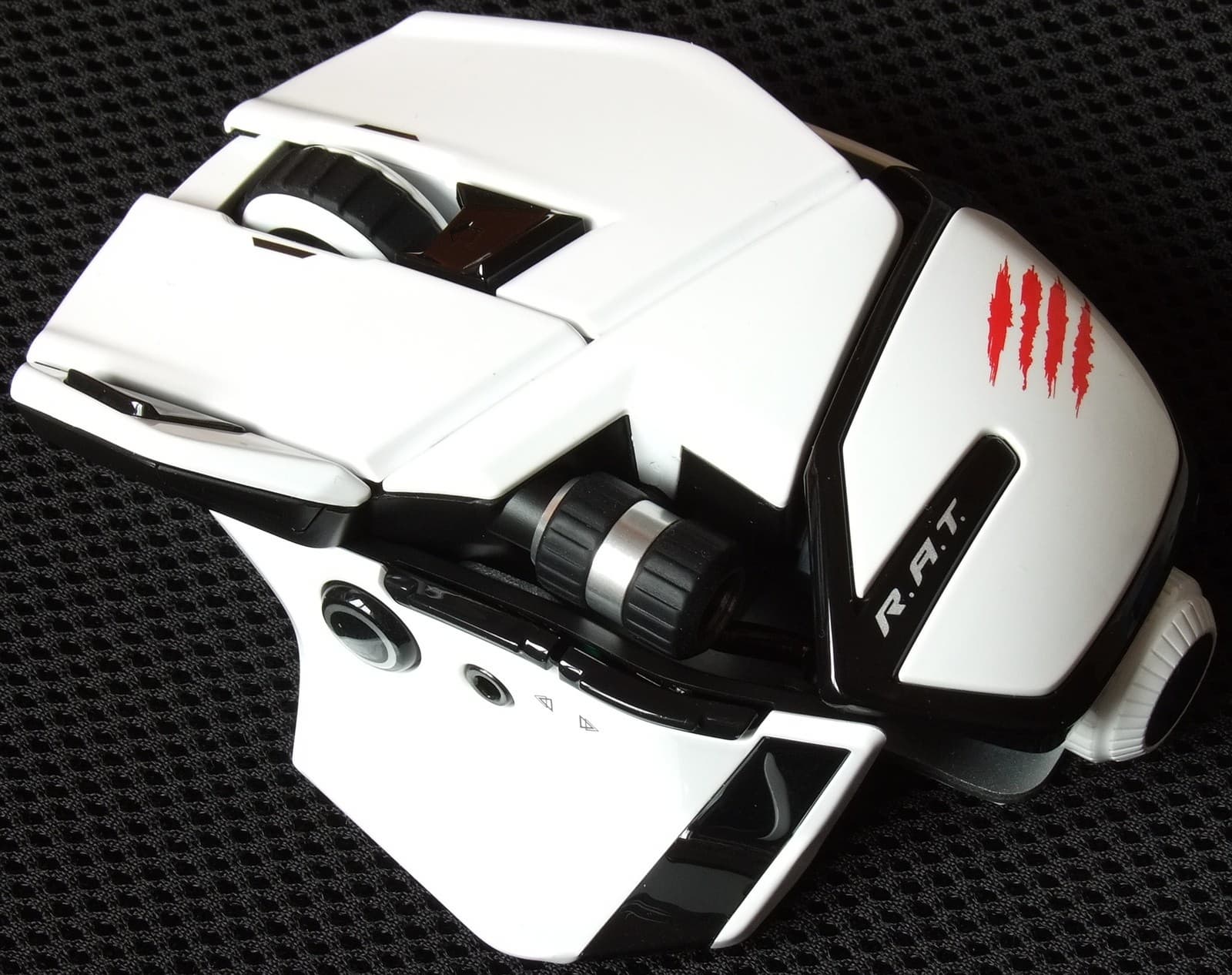 Серия R.A.T. (названия с точками после заглавных букв являются частью фирменного стиля) появилась в линейке Saitek/Mad Catz достаточно давно, основной особенностью этих мышей стала возможность изменения габаритов корпуса, позволяющая в широких пределах подогнать мышь по руке, от настройки длины у младших моделей до настройки ширины и сменных элементов у старших.