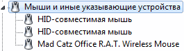 Программная поддержка реализована посредством собственных виртуальных устройств, поэтому к Mad Catz Office R.A.T. Wireless в разделе Мыши и иные указывающие устройства