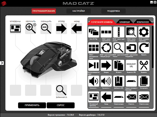 В отличие от производителей, унифицирующих ПО для своей периферии, Mad Catz предлагает скачивать и устанавливать программу и драйверы индивидуально для каждой модели в зависимости от операционной системы.