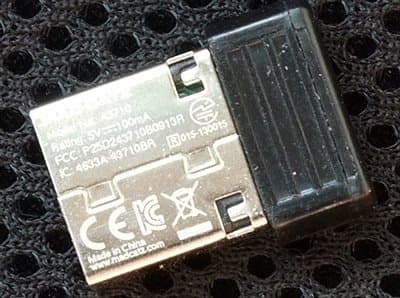 Мышь комплектуется компактным USB адаптером Bluetooth 4.0, закрепленном в нижней части, для извлечения достаточно нажатия.