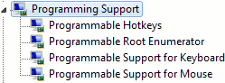 в диспетчере устройств добавляется раздел (!) Programming Support, включающий в себя Programmable Hotkeys, Programmable Root Enumerator, Programmable Support for Keyboard и Programmable Support for Mouse.