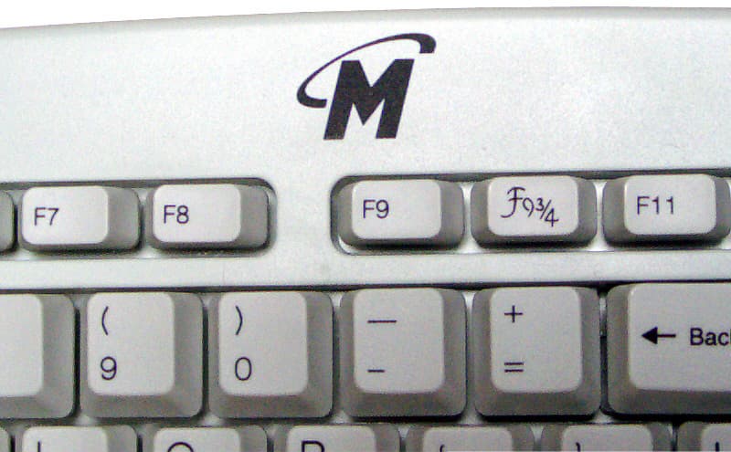В завершение рассказа о клавиатуре Гарри Поттера, остается описать ее мультимедиа-возможности. Как вы наверняка заметили, никаких дополнительных кнопок у данной клавиатуры не предусмотрено. О каких же мультимедийных расширениях тогда можно говорить? Да, дополнительных кнопок нет, но расширения, точнее одно расширение, все же есть! На приведенной фотографии видно, что кнопки F10 на данной клавиатуре нет. Вместо нее имеется кнопка-платформа 9¾. После установки программного обеспечения, которое прилагается к данному комплекту на диске, с этой платформы можно отправиться в путешествие по сайтам, посвященным Гарри Поттеру. Естественно, что для этого необходимо наличие интернет-соединения. Возможно, кому-то такие “расширенные” возможности данной клавиатуры покажутся смешными, но, как мне кажется, поклонники Гарри Поттера останутся довольны. Только вот, путешествие по русскоязычным ресурсам сети, посвященным этому герою, в программном обеспечении клавиатуры не предусмотрено. Но это только лицевая сторона медали. Обратная ее сторона заключена в том, что программное обеспечение Гарри Поттера волшебным образом терминирует кнопку F10. В каком бы приложении вы ни работали, кнопка F10, теперь ставшая кнопкой F9¾, выполняет только функцию препровождения вас на сайты Гарри Поттера. То есть, как F10 она более не функционирует. Совсем не функционирует! И длится это до тех пор, пока вы не удалите программное обеспечение Гарри Поттера. Предполагаю, что могут возникнуть такие ситуации, когда даже отъявленные фанаты этого сказочного персонажа будут недовольны таким вот поведением своей клавиатуры и захотят вернуть несчастной кнопке функции, предусмотренные каким-то другим приложением, отличным от драйвера рассматриваемой клавиатуры. И кстати, не думайте, что можно настроить драйвер так, чтобы он не перехватывал нажатие F10. Отнюдь! Единственное, что в нем можно настраивать, так это выбор того, какую именно страницу о Гарри Потере вы будете посещать. В общем, я не рекомендую вам устанавливать столь коварное программное обеспечение.