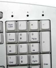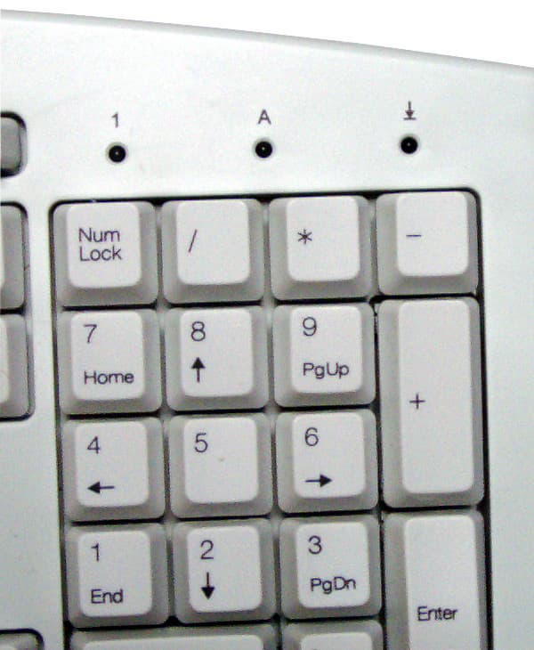 Третье, что я счел недостатком это эргономика клавишных полей. Большинство из нас привыкло к тому, что поля кнопок наших с вами клавиатур почти ровные. В некоторых случаях присутствует изгиб, но он совсем не значителен, равномерен, и на удобство работы с клавиатурой никак не влияет. В случае же с клавиатурой Memorex MX5050 дело обстоит совсем по-другому. Изгиб поля кнопок внутрь присутствует, но, в отличие, от большинства других клавиатур он заканчивается не у переднего края поля кнопок, а гораздо раньше. Далее, за ним следует как бы горб, который у переднего края поля кнопок заканчивается. Обратите внимание на приведенную мною фотографию цифрового блока кнопок. На ней отчетливо виден и изгиб внутрь и как бы «холм», следующий за ним. Что же в этом плохого? А плохо то, что во время работы для нажатия кнопок, расположенных в верхних рядах, рукам пользователя приходится как бы переваливать через горб, образованный нижними рядами. Должен сказать, что это весьма не удобно, так как руки все время трутся о кнопки нижних рядов. Несколько исправляет положение установка клавиатуры на открывающиеся ножки. Однако это увеличивает угол наклона поверхности кнопок по отношению к поверхности рабочего стола. А это, в свою очередь, может понравиться не всем.