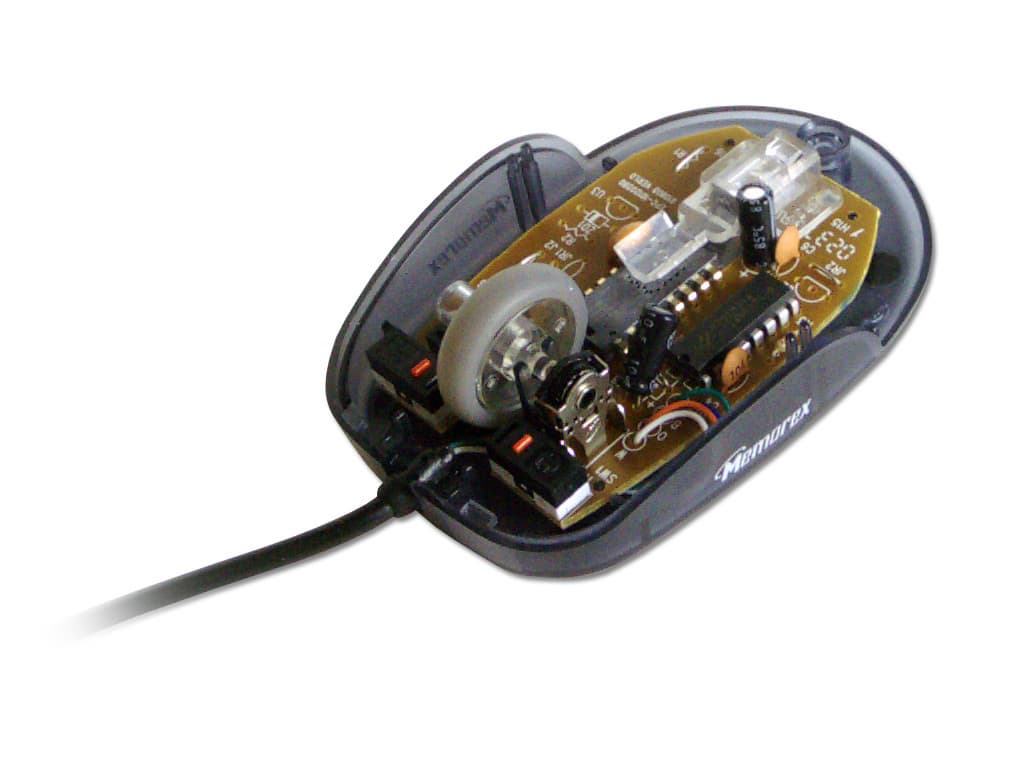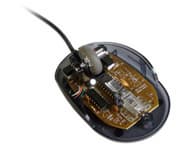 Внутри корпуса обнаруживается одна печатная плата, на которой и смонтированы все элементы электрической схемы рассматриваемых Memorex MXH-4000. Как можно заметить на приведенных фотографиях, для слежения за вращением колеса прокрутки в ней использован механический переключатель, а проводники интерфейсного кабеля запаяны прямо на контактные площадки печатной платы, без какого-либо разъема. К сожалению, оба этих факта говорят о том, что мы имеем дело с весьма недорогой мышкой, я бы сказал, средненького уровня. Производится она тем же производителем, что и мышки таких марок как Maxxtro, Defender и некоторых других. Об этом свидетельствует маркировка на печатной плате (см. фото выше) и унифицированные драйверы Browser Mouse, о которых я уже упоминал выше.