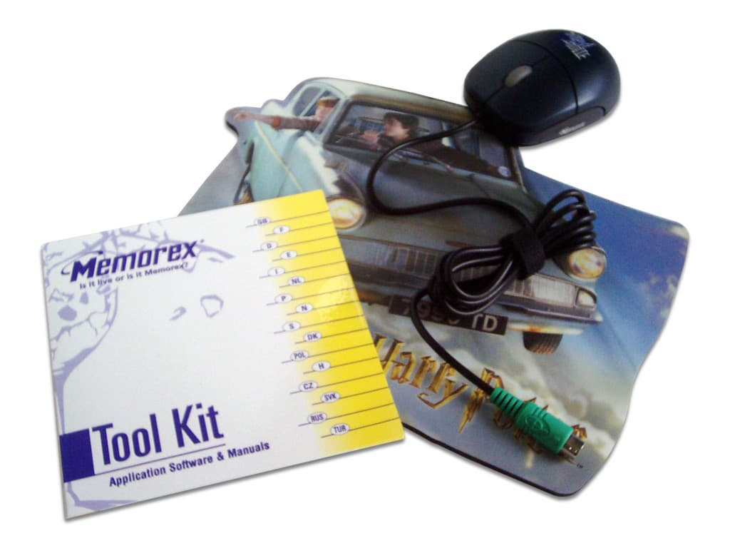 Знали ли мы ранее марку Memorex? Конечно, знали! Но вот мышей под этой маркой пока не видели. И тем белее удивительно то, в каком виде перед нами предстали их первенцы. Первоклассная упаковка уже гарантирует, что эти мыши будут первоклассным подарком для детей. Хотя, почему только упаковка? И сами устройства не отстают от коробок, в которых они поставляются. Все, от и до, выдержано в едином стиле популярнейшего сегодня среди детей персонажа — Гарри Поттера. Как гласила виденная мною в метро реклама, это его личные вещи. Судя по всему, финансовое состояние Гарри Поттера пошатнулось, и он начал распродажу своего имущества. Так что сейчас у вас есть возможность приобрести кое-что из принадлежавшей ему компьютерной периферии и, тем самым, порадовать ребенка, которому вы ее подарите. Как мне кажется, любое чадо должно очень даже возрадоваться столь хорошо оформленным и укомплектованным мышкам. Итак, давайте же, наконец, приступим непосредственно к рассмотрению “личных” мышек Гарри Поттера.