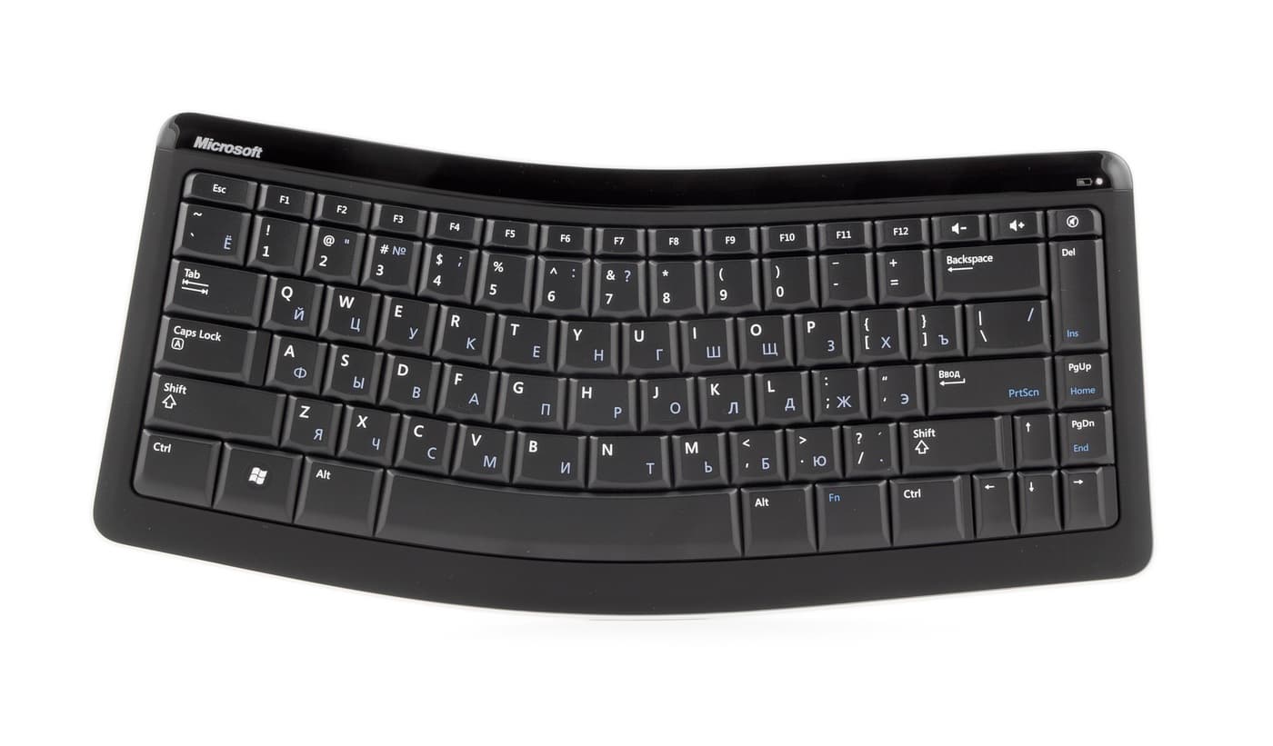 Одной из основных особенностей клавиатуры является изогнутая рабочая поверхность, которую производитель называет comfort curve: она изогнута таким образом, чтобы руки при печати лежали в естественном положении и не уставали.