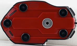Нижняя поверхность из слегка прозрачного матового пластика красного цвета, в ней пять отверстий для ножек и смещённый к передней части сенсор в металлическом кольце. Также фиксатор защёлки картриджа для грузиков. Задняя часть постоянно подсвечена красным, это чисто декоративная неотключаемая иллюминация.