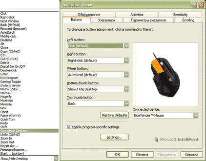 Управляющее ПО IntelliPoint