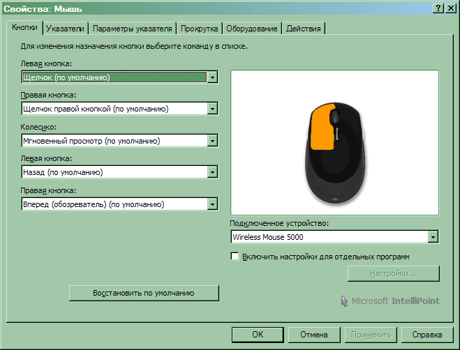 А в остальном — все как и раньше. Впрочем, IntelliPoint многими пользователями считался и считается одной из лучших программ для работы с мышью, так что здоровый консерватизм вполне уместен. Вот, например, возможность индивидуальной настройки кнопок для разных приложений появилась в IntelliPoint раньше всех, причем и до сих пор не все конкуренты эту возможность освоили, так что куда компании торопиться?