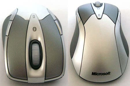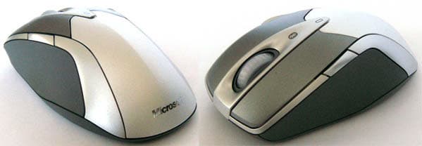 Родная сестра уже описанной нами Microsoft Wireless Laser Mouse 8000, лучшей на данный момент по совокупности признаков беспроводной мыши компании, кто не читал тот обзор — лучше ознакомиться сейчас. Есть только одно отличие — это цветовая гамма, состоящая из светло-серого и серебристого цветов. Алюминиевая спинка не заменена пластиковой, как в младшей модели комплекта, но выкрашена сверху серебрянкой. Таким образом, её финиш намного бледнее, чем у отдельно продающейся мыши, где это просто матовая шлифовка металла. Связано это, скорее всего, с тем, что под действием пота алюминий может «болеть», покрываясь мелкими чёрными точками окислов, и идти на такой риск в старшей модели компания не захотела. Однако металл на месте, и он приятно холодит ладонь даже через краску.