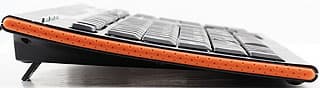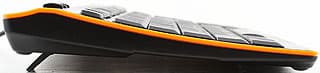 На первый взгляд, клавиатуры не совсем одинаковые. Но если к ним приглядеться, то хорошо видно, что отличия минимальны: немного другая форма корпуса (в частности, изгиб теперь менее выражен, так что ножки будут требоваться чаще), оранжевая окантовка вокруг всей клавиатуры, но пластиковая, а не резиновая, чуть изменившаяся форма трех из семи дополнительных кнопок, а также подписи ко всем дополнительным кнопкам теперь выполнены красной краской, а не белой. На этом все — основные рабочие характеристики двух данных моделей идентичны. Отличия дизайна при практическом использовании быстро перестают быть заметными, что и позволяет считать эти две клавиатуры не разными моделями, а двумя модификациями одной и той же. И, соответственно, описывать их вместе.