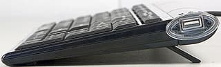 Сложилось ощущение, что в работе над клавиатурой участвовало две группы дизайнеров, придерживающихся несколько разных взглядов на то, какой она должна быть. Основную часть клавиатуры разрабатывали люди, поставившие себе целью выпустить компактную клавиатуру с обязательной на сегодня функциональностью и не более того. Потом на работу вышла вторая часть коллектива разработчиков, и верхняя часть клавиатуры была увеличена на пару сантиметров при помощи округлого нароста, длиной во всю клавиатуру. При этом практически никакой функциональной нагрузки данное утолщение не несет — кнопок там нет. Есть три светодиода и два USB-порта, но для них увеличивать размеры клавиатуры было совсем необязательно. Скорее всего, таким дизайном клавиатура обязана в первую очередь стремлению сделать ее красивой, а не каким-то утилитарным потребностям. Если так, то задача выполнена.