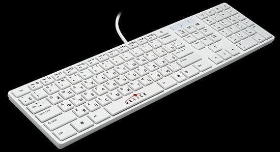 Клавиатура получилась весьма оригинальной, что является ее однозначным плюсом. Привлекательная внешность, функциональность на уровне несколько выше минималистских «стандартных» моделей, удобная, достаточно тихая и влагозащищенная — все это достоинства. Но, к сожалению, насладиться ими в полной мере можно только при использовании штатной силиконовой накладки на клавиши. При этом отказ от последней делает устройство более привлекательным внешне, однако ухудшает его потребительские качества. Об этом стоит помнить. Впрочем, конечный результат нам, пожалуй, скорее, нравится, чем наоборот. Во всяком случае, это касается клавиатуры белого цвета — накладка не портит ее внешний вид, зато достоинств (типа влагозащищенности) добавляет. Если вас ее использование, по какой-либо причине, не устраивает принципиально, придется попробовать подыскать другую модель.