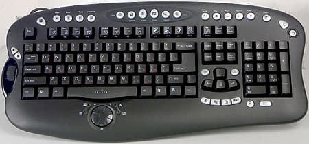 Чем же нам в данном случае могут помочь описываемые сегодня модели клавиатур? Как раз наличием USB-порта прямо «на себе». При этом речь идет не о хабе — порт один, а сама клавиатура имеет стандартный для недорогих моделей интерфейс PS/2. По сути, в них просто встроен USB-удлинитель, а интерфейсный кабель представляет собой два независимых (но упакованных в общую оболочку) провода, заканчивающиеся собственными вилками USB и mini-DIN. Такой вариант увеличивает цену устройства лишь на несколько центов, но выполняет то, что от него требуется — USB-порт под рукой и безо всяких лишних проводов на столе. Причем порт полноскоростной (разумеется, в том случае, если вы не подключите соответствующий разъем к порту USB 1.1 на старой материнской плате) и не накладывающий дополнительных ограничений на производительность или энергопотребление подключаемых к нему устройств (в отличие от хаба). Просто, удобно, элегантно и на цене практически не сказывается.