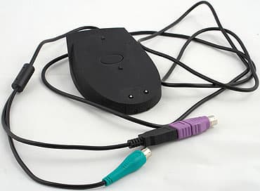 Двухголовый хвост ресивера позволяет подключить его двумя способами — традиционным, через два порта PS/2 для мыши и клавиатуры, если таковые есть, либо более современным — через один USB порт. В этом случае вставлять мышиный коннектор не надо. Мы выбрали традиционный путь из соображений экономии USB портов — очень правильно, на наш взгляд, давать возможность пользователю сделать такой выбор.
