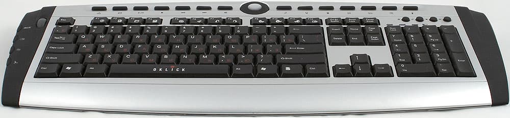 Хорошо известная нашим читателям компания Nippon klick в начале этого года выпустила новую линейку устройств ввода под торговой маркой Oklick. Её отличительной особенностью является интересный итальянский дизайн, разработанный по соглашению компанией Nortek, занимающейся промышленным дизайном. И, если «встречают по одежке…», то с первым этапом сегодняшний объект внимания справляется хорошо. У нас оказался беспроводной набор, на наш взгляд, самый интересный в этом ряду — он характеризуется максимальной функциональностью клавиатуры и лазерной беспроводной мышью.